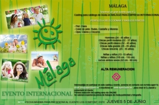 CASTING para CATÁLOGO de MODA en MÁLAGA para empresa INTERNACIONAL. Plazo de inscripciones en www.agenciaaire.es ¡¡ HASTA ESTE JUEVES 5 de JUNIO ¡¡ MÁLAGA Tenemos un gran evento para tí ¡¡ Casting para catálogo de moda en MALAGA PARA EMPRESA INTERNACIONAL. PERFILES A ... (+)Ver Más